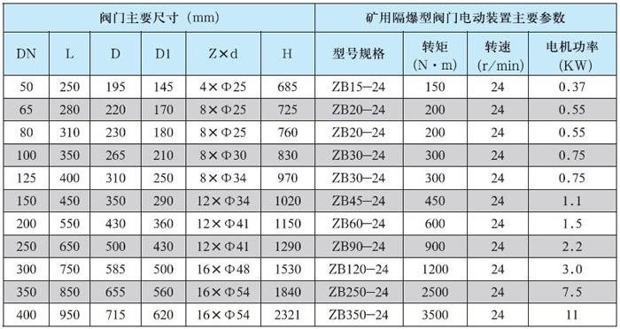 三、礦用本安型防爆電動球閥技術參數